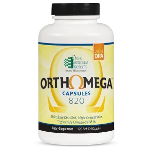 Orthomega® 820 provides 820 mg of eicosapentaenoic acid (EPA) and docosahexaenoic acid (DHA) as well as 50 mg of docosapentaemoic acid (DPA) per soft gel as re-esterified triglycerides, the preferred form with superior absorption. Vitamin E (as mixed tocopherols) and rosemary extract are used to ensure maximum purity and freshness. 120 capsules.