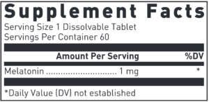 Melatonin dissolvable tablets contain 1 mg of high purity melatonin sweetened exclusively with xylitol and mannitol. 1 mg. 60 capsules.