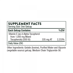 Ultimate E contains a mixture of all tocopherols and utilizes molecular distillation to remove allergenic soy residues. Vitamin E is a vital antioxidant, and has been shown to benefit the cardiovascular system.* 60 gelcapsules