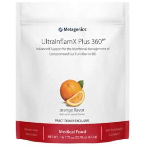 UltraInflamXPlus 360°® is a medical food formulated to provide strategic macro- and micronutrient support for patients with compromised gut function resulting from inflammatory bowel disease, including ulcerative colitis and Crohn’s disease. 14 servings, Orange.