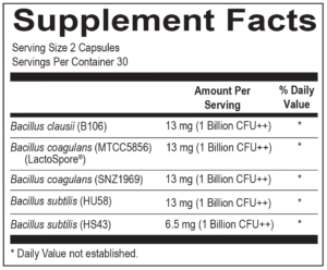 Ortho Spore Complete is a spore-based, broad-spectrum probiotic formula designed to maintain diversity and balance in the gut microbiota and support gastrointestinal health after SIBO. 60 capsules.