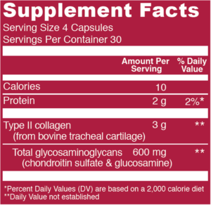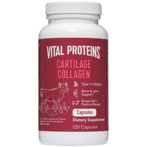 Cartilage Collagen is rich in type II collagen peptides and glycosaminoglycans, including naturally occurring chondroitin sulfate. 120 capsules.