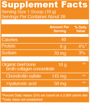 Crafted from the bones of free-range chickens and helps support healthy hair, skin, nails, bones and joints. 28 servings.