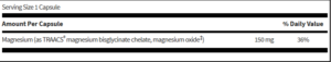 Magnesium is an essential mineral for health, strength, and longevity; it functions as the required bio-inorganic catalyst in over 350 enzyme reactions. 120 capsules.