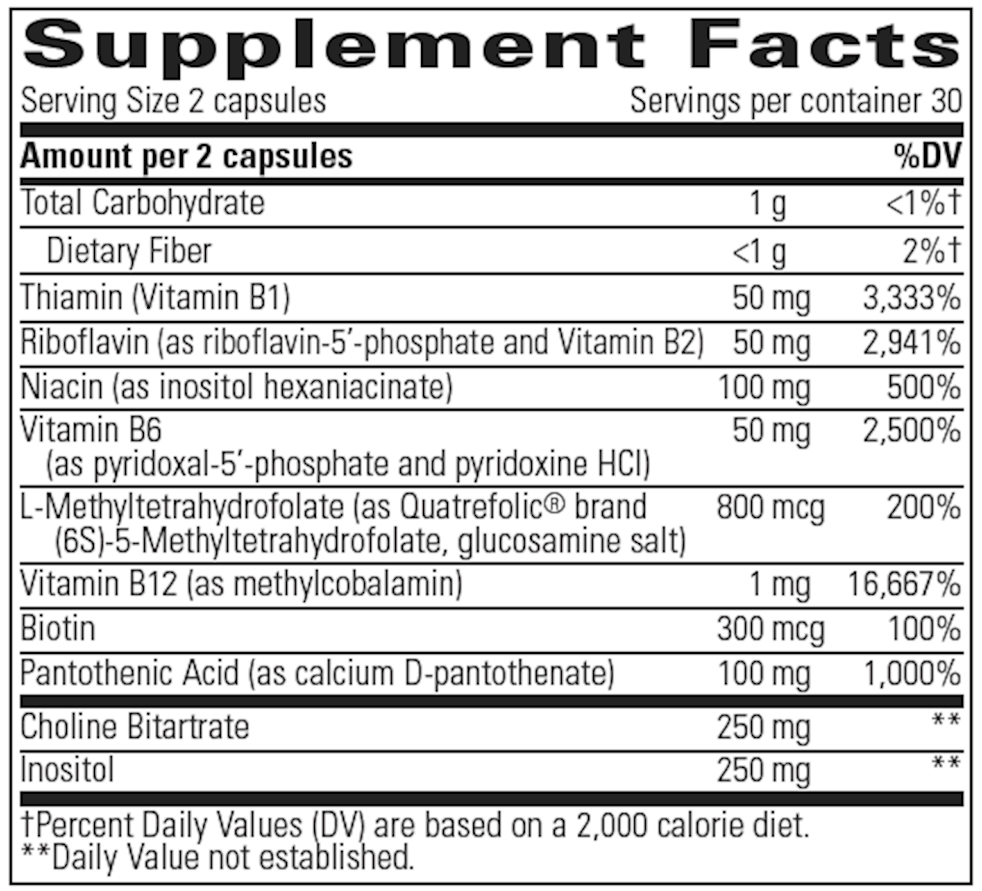 Due to manufacturing complexities associated with Active B Complex, we have made changes that include reducing the choline content from 250 mg to 120 mg and the inositol content from 250 mg to 60 mg 2-capsule per serving. These reductions will allow us to manufacture with greater efficiency to meet growing demand. In addition, your patients may notice a reduction in the odor generally associated with B vitamin formulas.