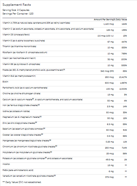 Multivitamin/Mineral Formula for Wellness Support*. 240 capsules.