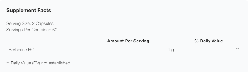 Berberine is a naturally occurring plant alkaloid with demonstrated benefits for blood glucose and lipid metabolism. 120 capsules.