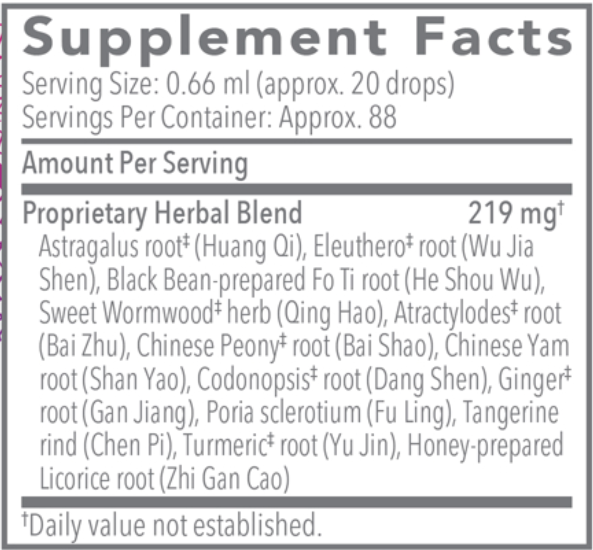 Biotonic’s unique botanical combination – 13 herbs in all – includes Artemisia to strengthen microbial balancing activity and promote a healthy inflammatory response.* Fo Ti supports healthy liver function.*