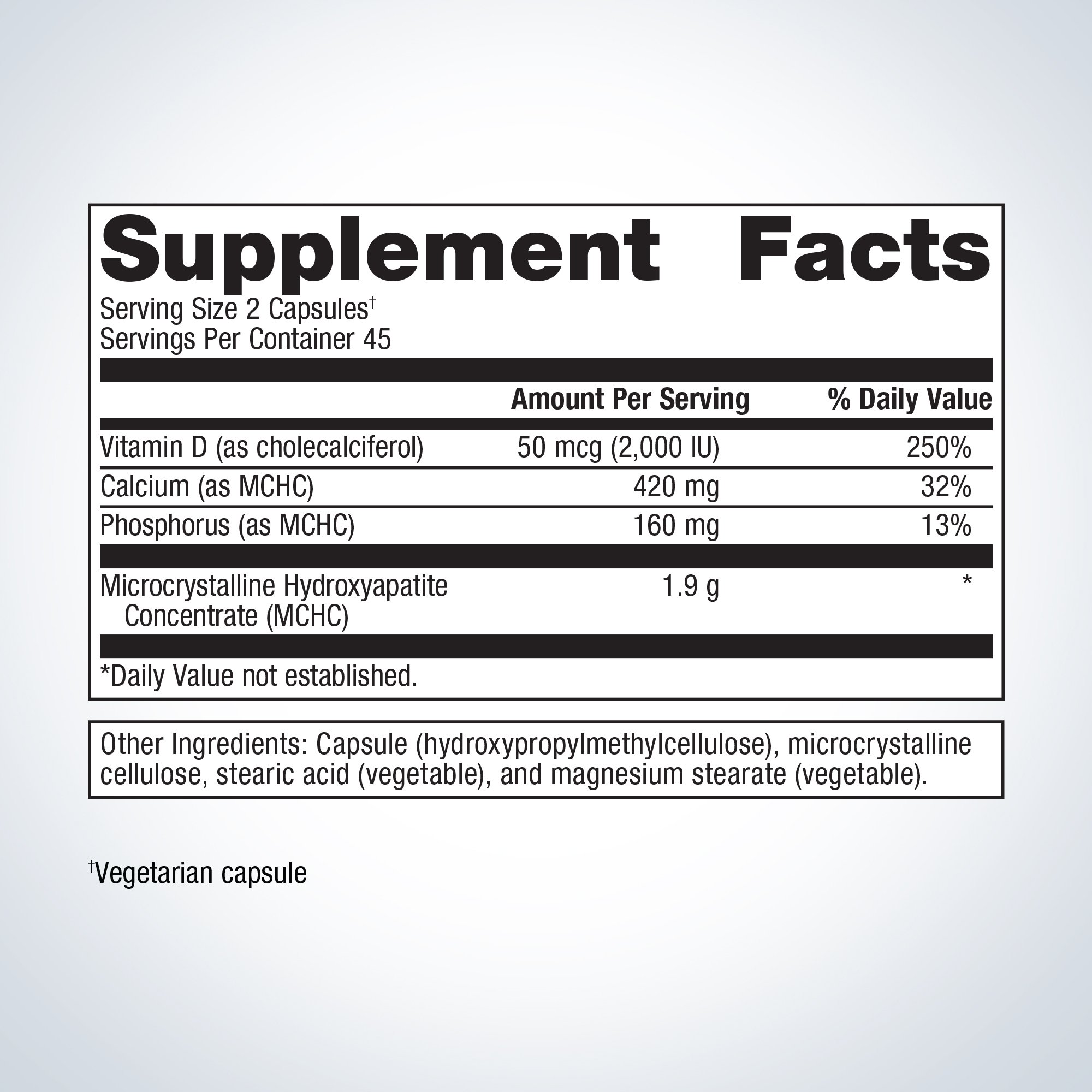 | Microcrystalline Hydroxyapatite Concentrate (MCHC) | 1.9 g | * |