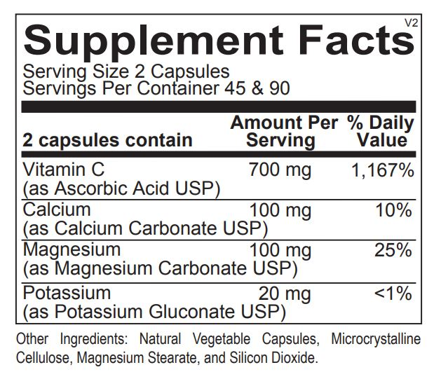Buffered Vitamin C This formula allows for higher doses of vitamin C, a critical component of immune health and an important antioxidant in the body. Buffered C capsules are balanced with calcium, magnesium and potassium to gently deliver high-concentration vitamin C with reduced gastrointestinal upset.