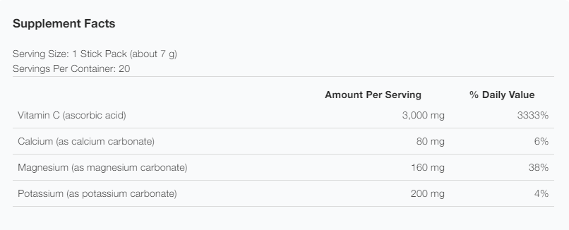 High-Potency, Tapioca-Derived Vitamin C.* 20 servings.