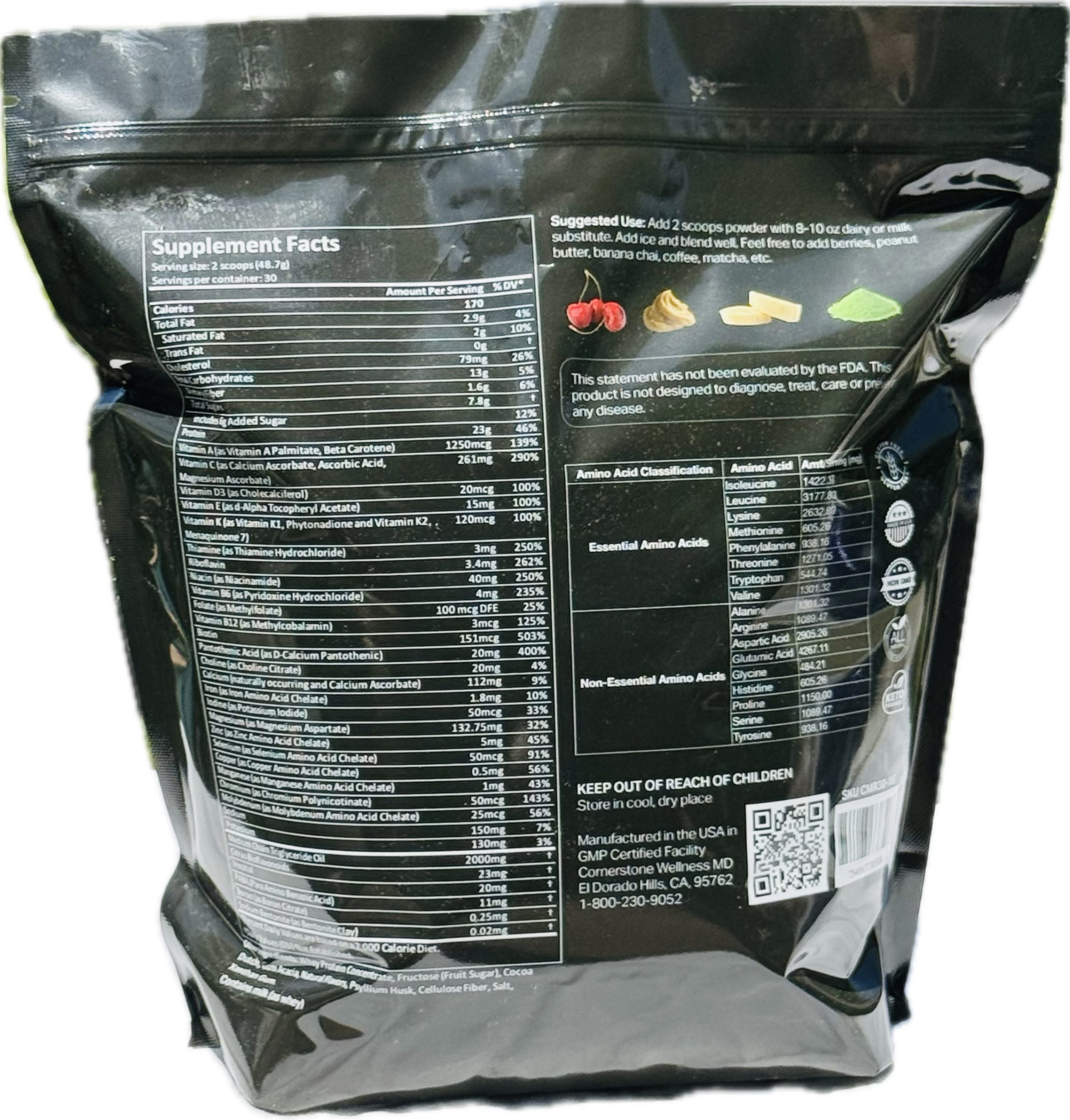 Cornerstone MD shakes are NOT a liquid diet or very-low-calorie plan shake. Blend and use this delicious high-protein supplement in addition to healthy meals in order to insure adequate protein, vitamins and minerals. This is your low calorie/low carbohydrate vehicle to reach a daily protein goal of 1.5grams/kg body weight to provide fat loss with maintenance of muscle mass to preserve BMI.