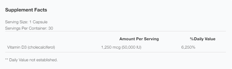 Consult your healthcare professional before use. Individuals taking medication should discuss potential interactions with their healthcare professionals. This product contains a high dose of vitamin D that is not intended for daily or long-term use or use by children or pregnant/nursing women. Do not use if tamper seal is damaged.