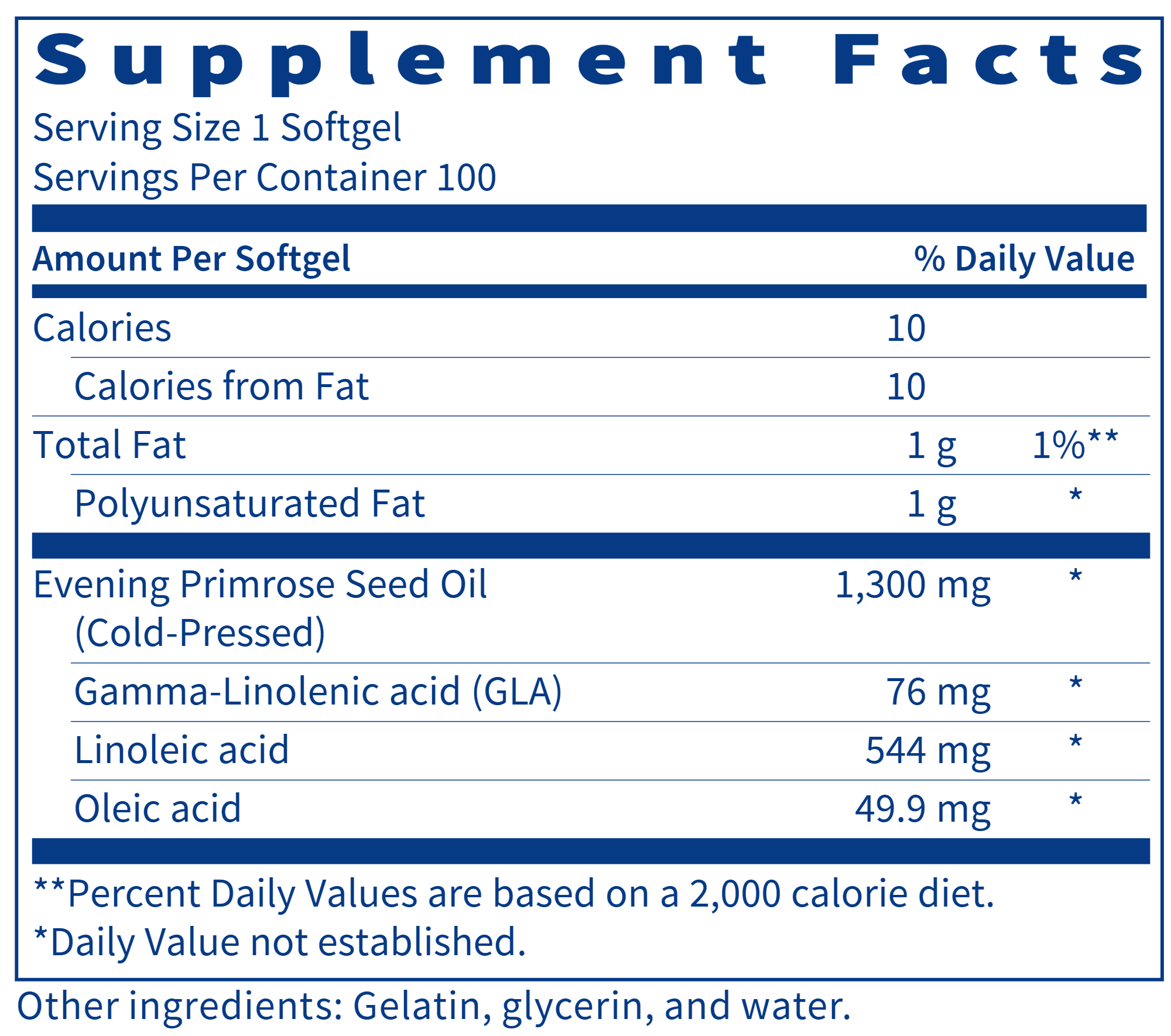 Evening primrose supports cartilage and joint function, neuroendocrine and cognitive health, skin and connective tissue health, and helps maintain nerve function, and cardiovascular health. 100 softgels.