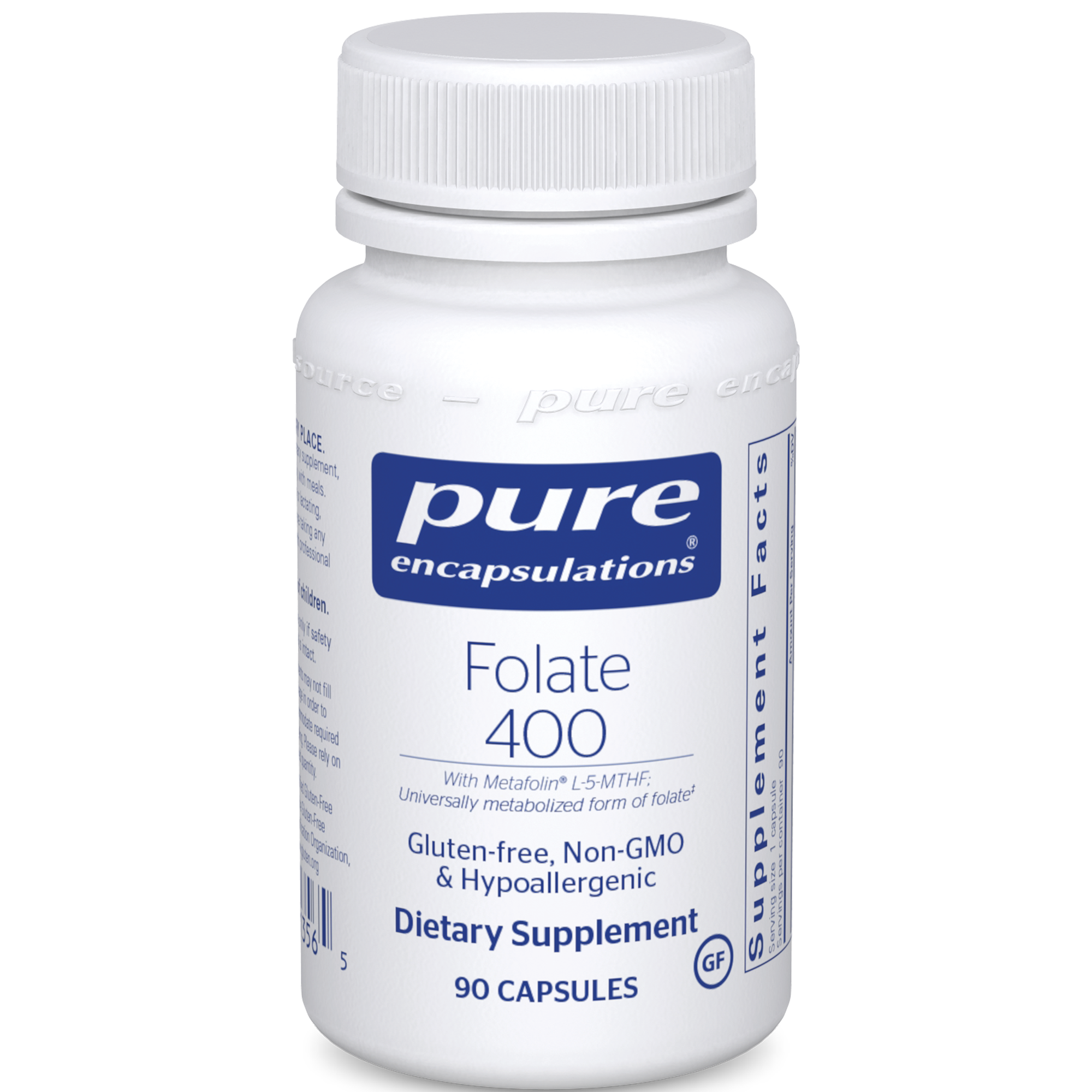 Folate 400 provides 400 mcg per capsule of Metafolin® L-5-methyltetrahydrofolate (L-5-MTHF), the naturally occurring, universally metabolized form of folate.