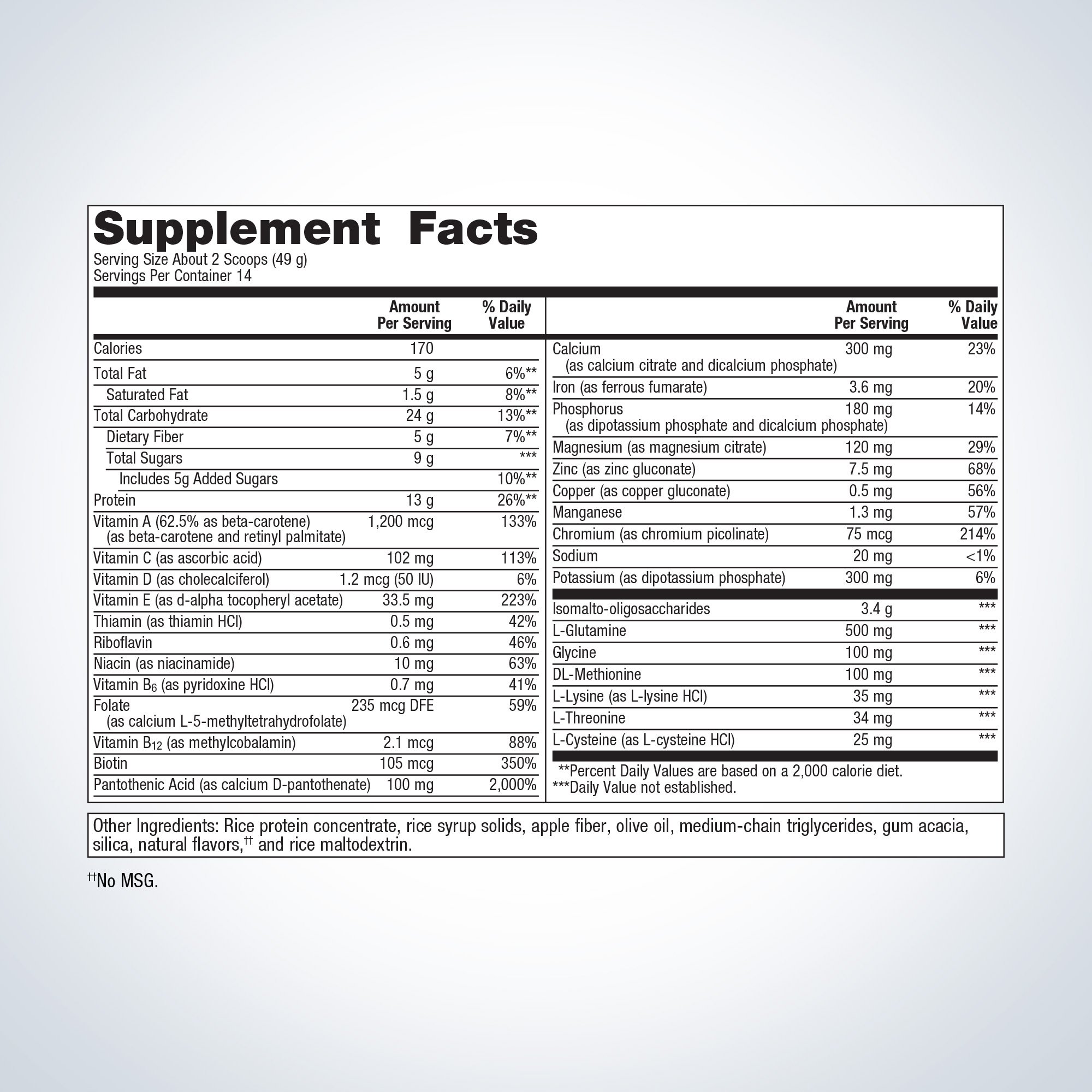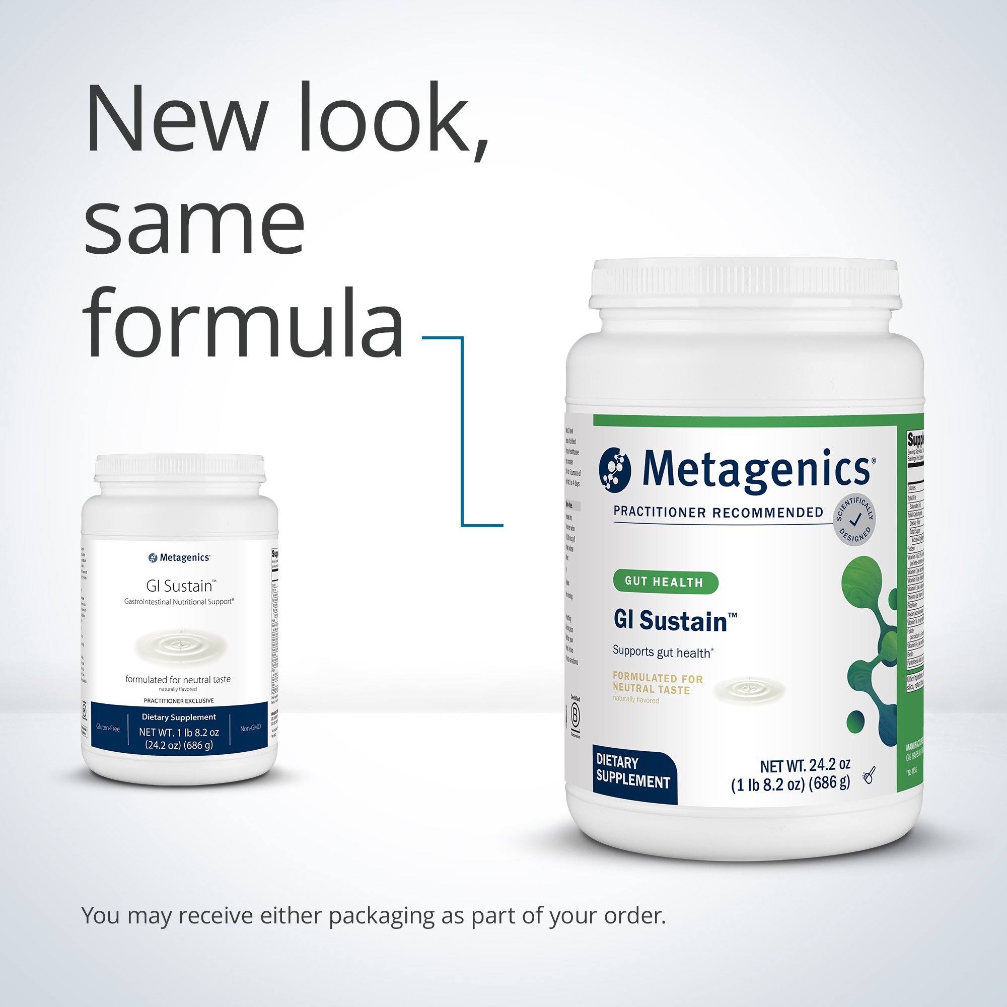 GI Sustain, provided as a powdered beverage mix, is a medical food designed to nutritionally support patients with leaky gut syndrome. -Nutritionally supports the “Regenerate” and “Reinoculate” phases of Metagenics GI Restoration Program. -Features specially processed high amylose rice flour, augmented with essential amino acids to increase the biological value of the protein. -Provides high-molecular-weight rice dextrins as the carbohydrate source and medium-chain triglycerides as a source of readily absorbed and metabolized lipids. -Fortified with nutrients such as zinc gluconate, L-glutamine, and pantothenic acid to nutritionally support gastrointestinal mucosa integrity. -Provides fructooligosaccharides (FOS)and inulin to support the growth of “friendly” intestinal bacteria.