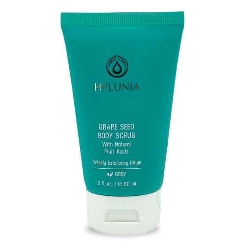 Discontinued by manufacturer. See Grape Seed Body Scrub (5.1 oz) by Hylunia A natural exfoliant for the body containing ground grape seeds that leaves skin smooth and radiant by buffing away dry areas. Minimizes breakouts and in-grown hairs by removing pore-clogging debris. 2.0 oz tube.