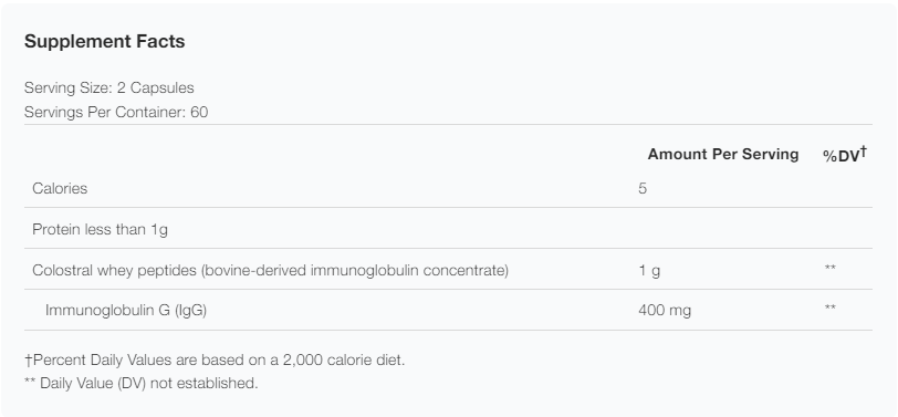 Immunoglobulin Concentrate from Colostral Whey Peptides. 120 capsules.