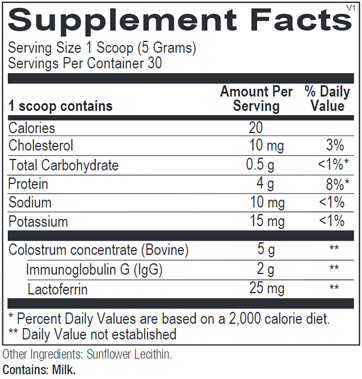 IgG Protect’s pure and high concentration formula provides improved immune modulation and strengthens the gut-immune barrier. Consistency in potency and purity of colostrum extracts is a primary concern for clinicians. Advanced filtration and purification techniques make IgG Protect a superior clinical tool. IgG Protect provides 1,000 mg of IgG and 1.75 g of protein per serving.