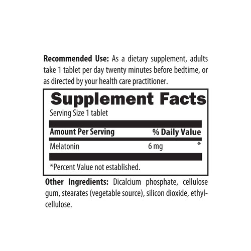 Melatonin SRT™ provides 6 mg of the hormone melatonin in a sustained release tablet. As a supplement, melatonin is useful for regulating sleep and the body’s daily rhythmic cycle.** Various factors may cause melatonin levels to become low, such as inadequate dietary intake of its precursor tryptophan, low levels of serotonin, normal aging, insufficient exposure to natural light, and certain medications. Due to melatonin’s relatively short half-life in the body, a sustained release formula may be more suitable for those who experience difficulty staying asleep through the night. Recommended Use: As a dietary supplement, adults take 1 tablet per day twenty minutes before bedtime, or as directed by your health care practitioner.