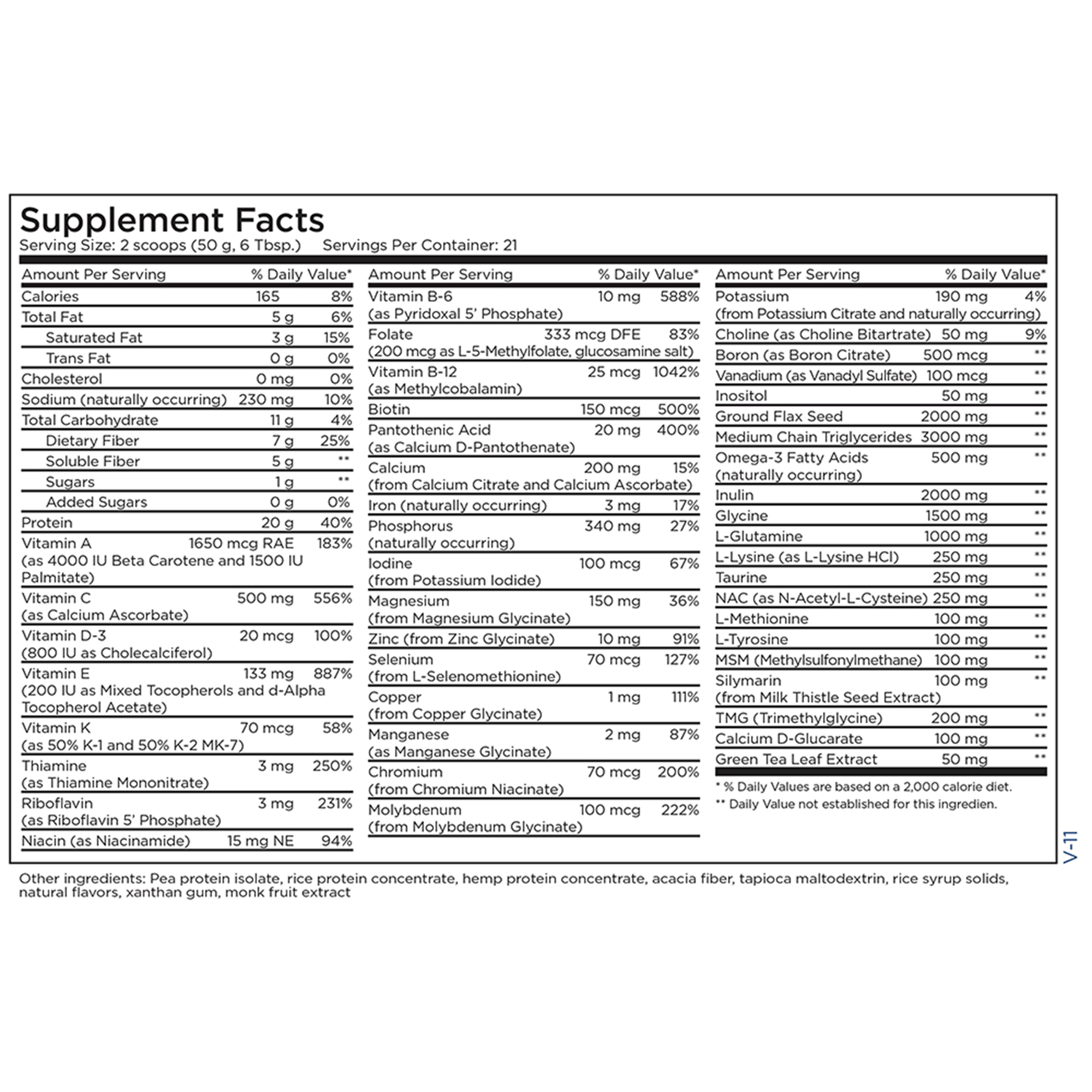 Allergens: According to information provided by our suppliers, these powders are free of the eight major allergens as identified by the Food Allergen Labeling and Consumer Protection Act of 2004 (FALCPA): Wheat (gluten), eggs, milk, soybeans, shellfish, fish, peanuts, tree nuts.   Recommendations: Blend, shake or stir 2 scoops (50 grams) into 8-12 ounces of water or juice, 2-3 times per day, or as directed by a healthcare professional.   Precautions: Pregnant or lactating women and individuals taking prescription medications should consult with a healthcare professional before taking any supplement.