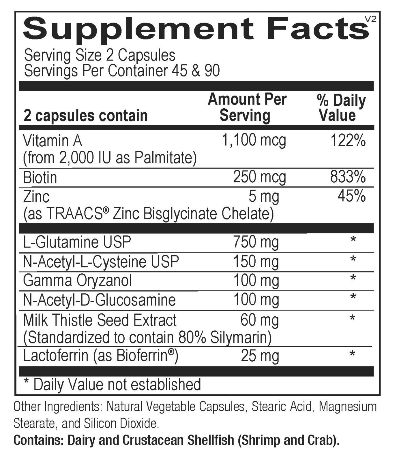 L-Glutamine L-glutamine is an amino acid which serves as a primary source of fuel for the small intestines. Epithelial cells in the small intestines (enterocytes) use L-glutamine as their metabolic fuel which helps maintain mucosal growth, structure, and function. Gamma Oryzanol Gamma oryzanol is a natural component of rice bran oil. It is a mixture of ferulic acid esters of sterol and triterpene alcohols. Rice bran oil includes about 1-2% gamma oryzanol, which it functions as a highly effective antioxidant in the GI tract. N-Acetyl Glucosamine N-acetyl glucosamine is the acetylated form of glucosamine. N-acetyl glucosamine is a mucin precursor and has been shown to increase the production of mucus within the GI tract. Lactoferrin Lactoferrin is a glycoprotein that is naturally found in colostrum. It helps maintain normal microbial and inflammatory balance in the GI tract. Silymarin (Milk Thistle Seed Extract) Milk thistle (Silybum marianum) is an annual plant indigenous to Europe and the United States and has been used for centuries as an herbal medicine to boost liver function. N-Acetyl Cysteine N-acetyl cysteine (NAC) is a sulfyhydryl containing amino acid that is commonly used to support liver and gut health. Micronutrient Blend Mucosagen includes the synergistic nutrient combination of zinc, vitamin A, and biotin, which are crucial for supporting GI health.