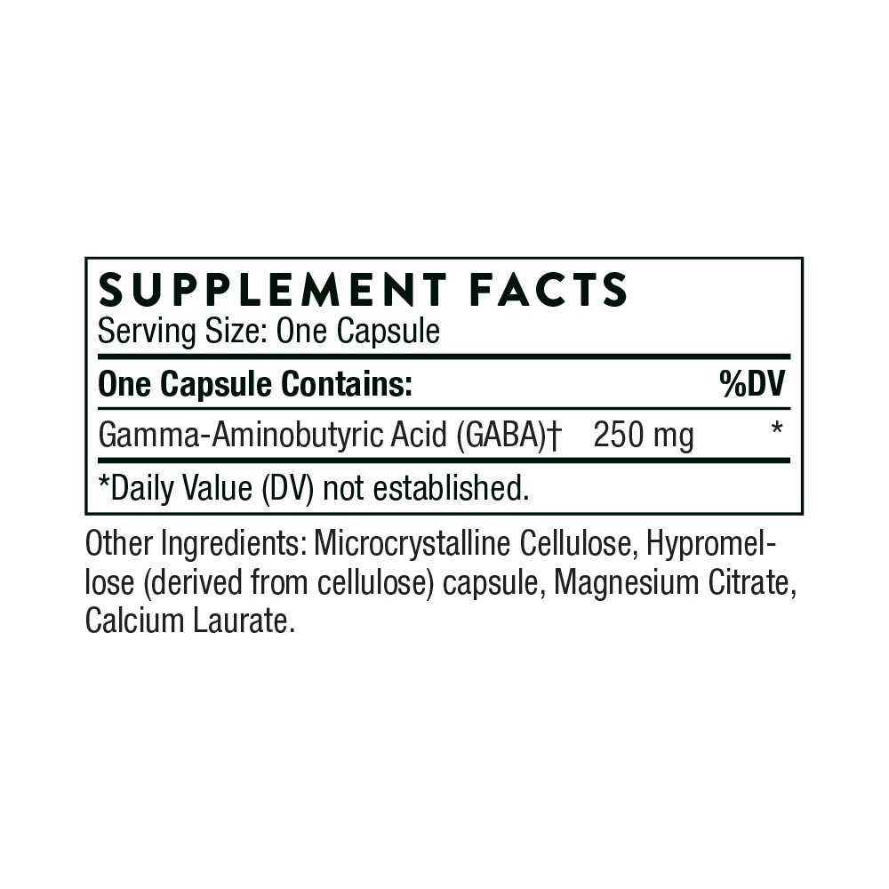 GABA is a naturally occurring amino acid in the brain and is a major inhibitory neurotransmitter in the central nervous system. GABA serves as a critical calming agent for the body, helping to combat mild or occasional stress and anxiety. 60 capsules, 250mg.