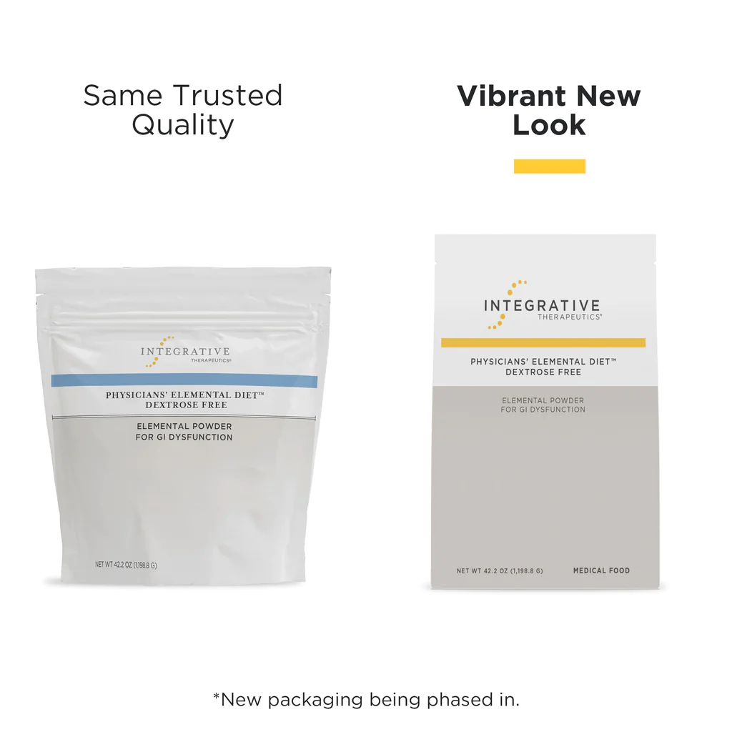 Physicians’ Elemental Diet Dextrose-Free™ has a new look. New packaging, same trusted product.