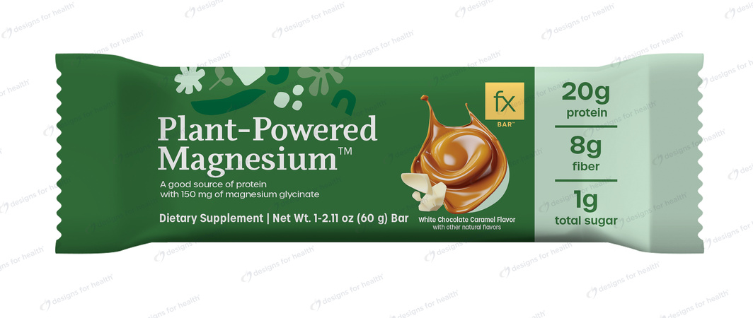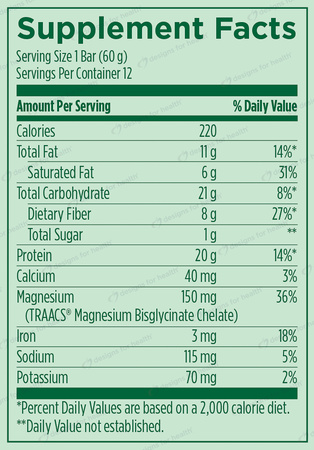 A delicious white chocolate caramel flavored functional supplement bar with an oat milk white chocolate coating, and a protein filling boosted with the essential mineral magnesium. Magnesium glycinate is the superior form of magnesium (Mg) that can be absorbed more quickly and without worries of stomach upset typically associated with Mg supplementation.*