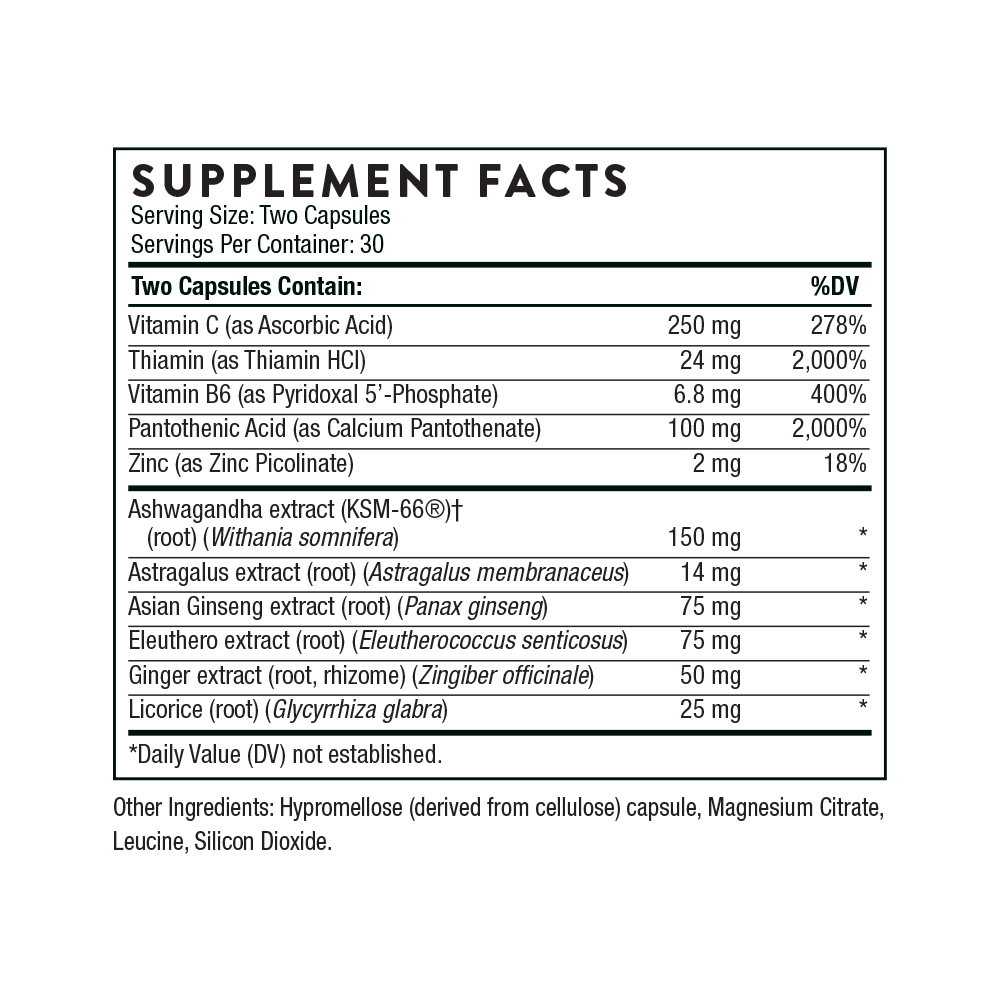 The constant low-level daily stress most of us experience can overstimulate and overtax the adrenal glands, thus adversely affecting our immune, cardiovascular, neurological, and endocrine systems. Thorne’s Stress Balance helps to modulate the effects of a modern lifestyle.* Its unique combination of key adaptogen botanicals, B vitamins, vitamin C, and zinc helps the adrenal glands optimize their response to stress.*