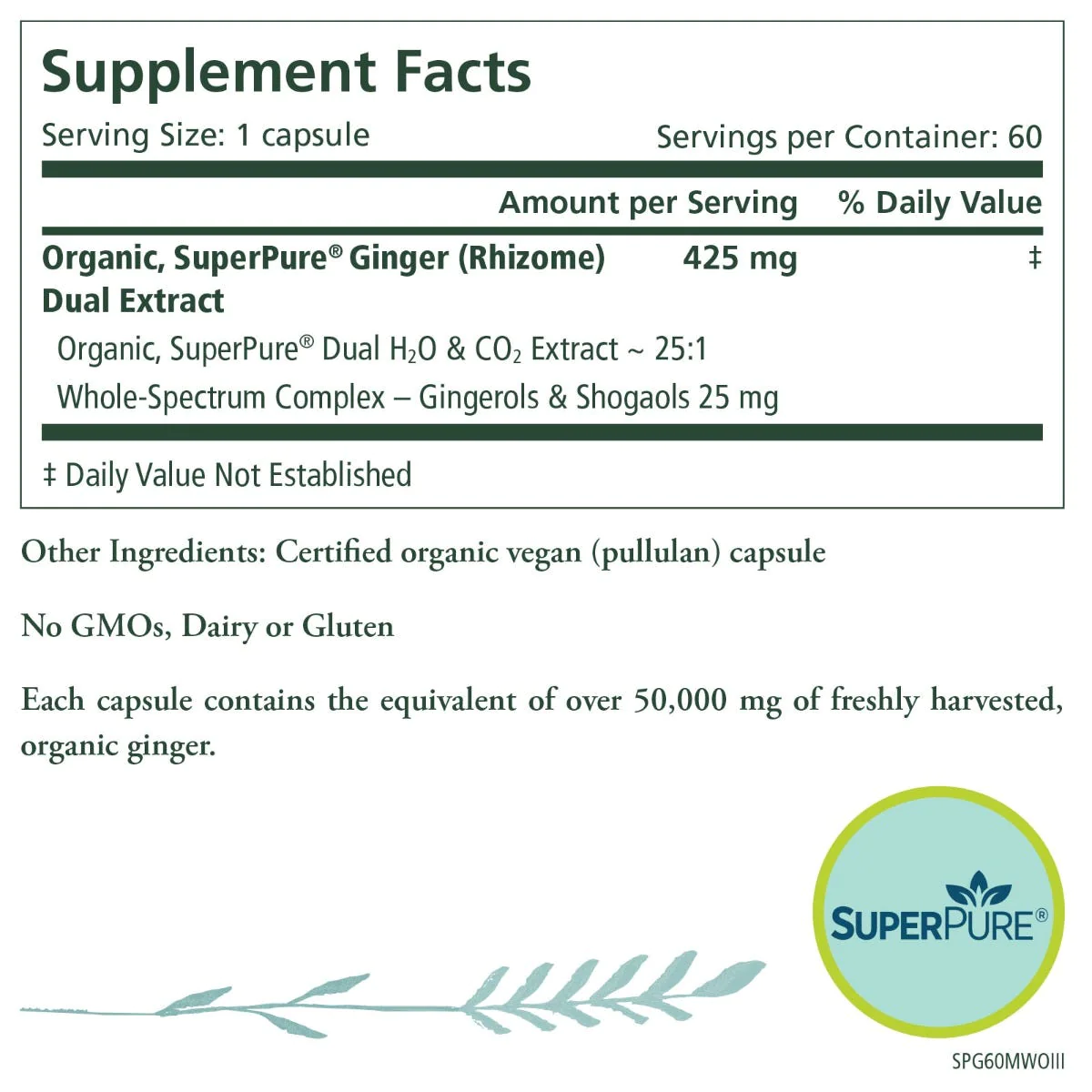 Over 50,000 mg of freshly harvested, organic ginger concentrated into every capsule