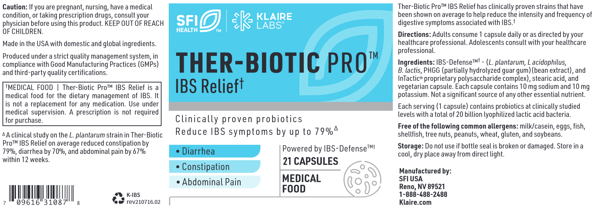 Ther-Biotic Pro™ IBS Relief is a probiotic medical food powered by IBS-Defense™ a unique combination of probiotic strains + a low FODMAP prebiotic protected by InTactic® Technology. * IBS-Defense™ probiotics have been clinically proven to reduce the severity and frequency of IBS symptoms, including constipation, diarrhea, abdominal pain, and flatulence.* Clinical studies show that a root cause of IBS symptoms such as diarrhea, constipation and abdominal pain is a breakdown in the gut barrier (leaky gut), which is caused in part by an imbalance of beneficial gut bacteria. Ther-Biotic Pro IBS Relief with IBS Defense is a medical food for the dietary management of IBS that helps strengthen the gut barrier by rebuilding these beneficial bacteria to reduce IBS symptoms.*