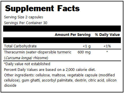 Theracurmin HP provides 180 mg curcumin in only two capsules allowing for flexibility in dosing. It is 27x more bioavailable than standard curcumin extracts. 60 capsules.