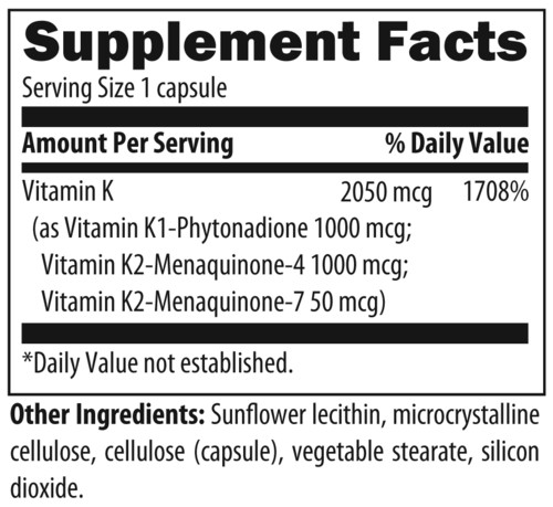 Tri-K™ is a synergistic blend of vitamins K1 and K2, along with geranylgeraniol (GG), that work together to promote optimal delivery of vitamin K2(MK-4) to tissues supporting normal blood clotting, bone mineralization, and arterial elasticity.* Each one-softgel serving delivers 2,000 mcg of vitamin K1 (as phytonadione), 500 mcg of vitamin K2 (as menaquinone-4 [MK-4]), and 17.5 mg GG-Gold®, a patented form of GG, to support vitamin K status in the body.* Recommended Use: Take one softgel twice per day with a meal, or as directed by your health care practitioner.