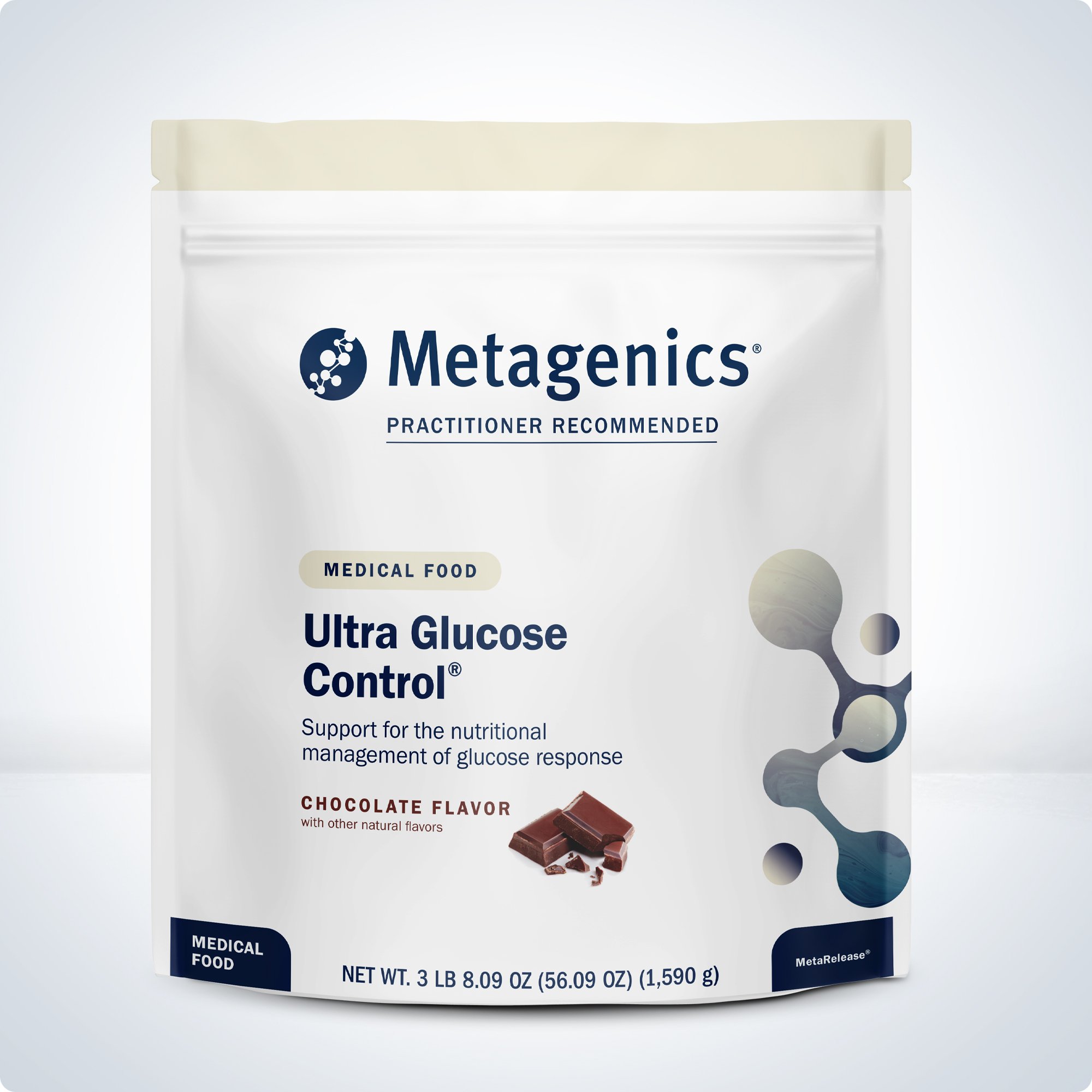 Formulated for the nutritional management of glucose response. It is designed for individuals who may need additional support in controlling their blood sugar levels. 30 servings, chocolate flavor.