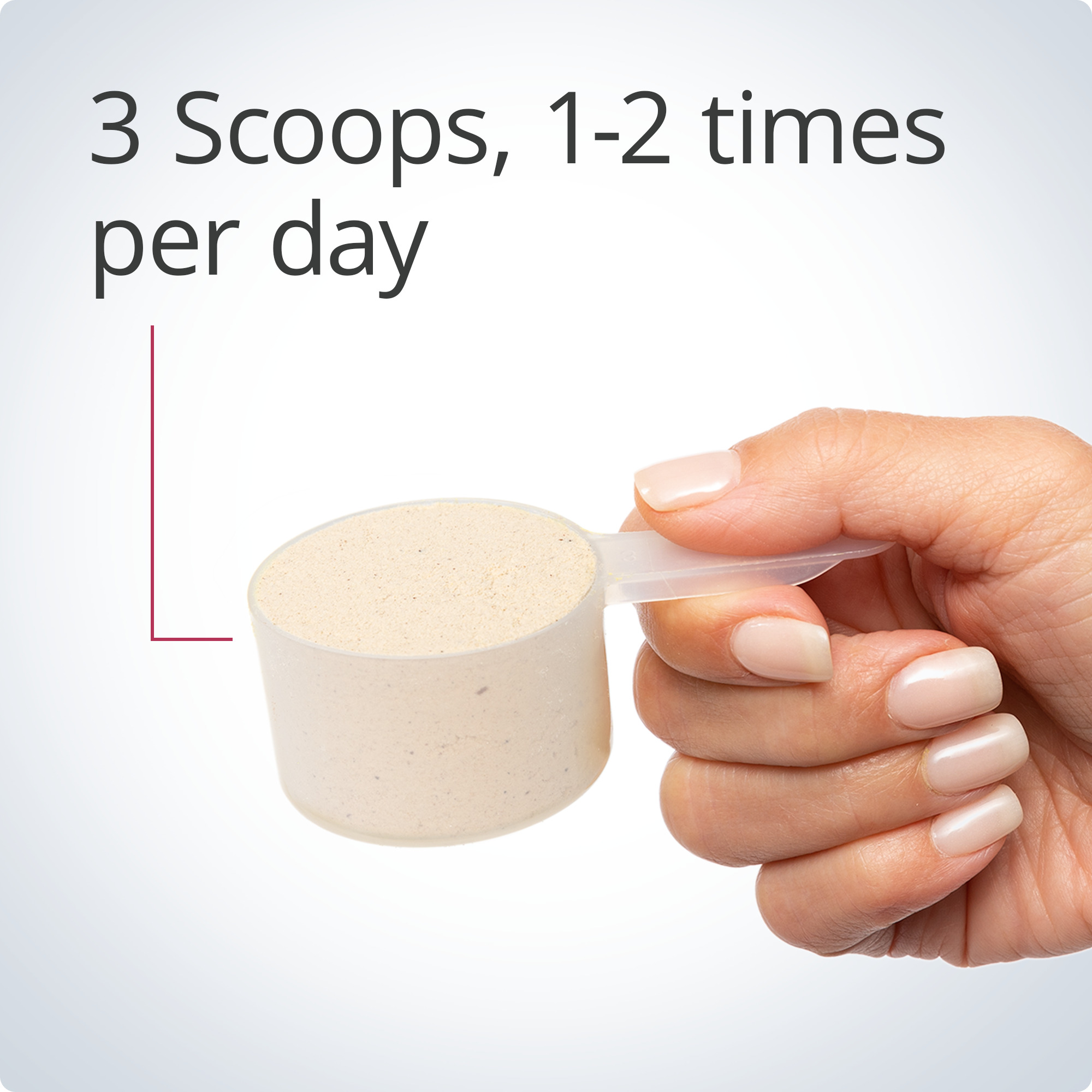 Directions: Blend, shake, or briskly stir 3 level scoops (53 grams) into 10-12 fluid ounces of chilled water. Take once or twice daily, or as directed by your healthcare practitioner.