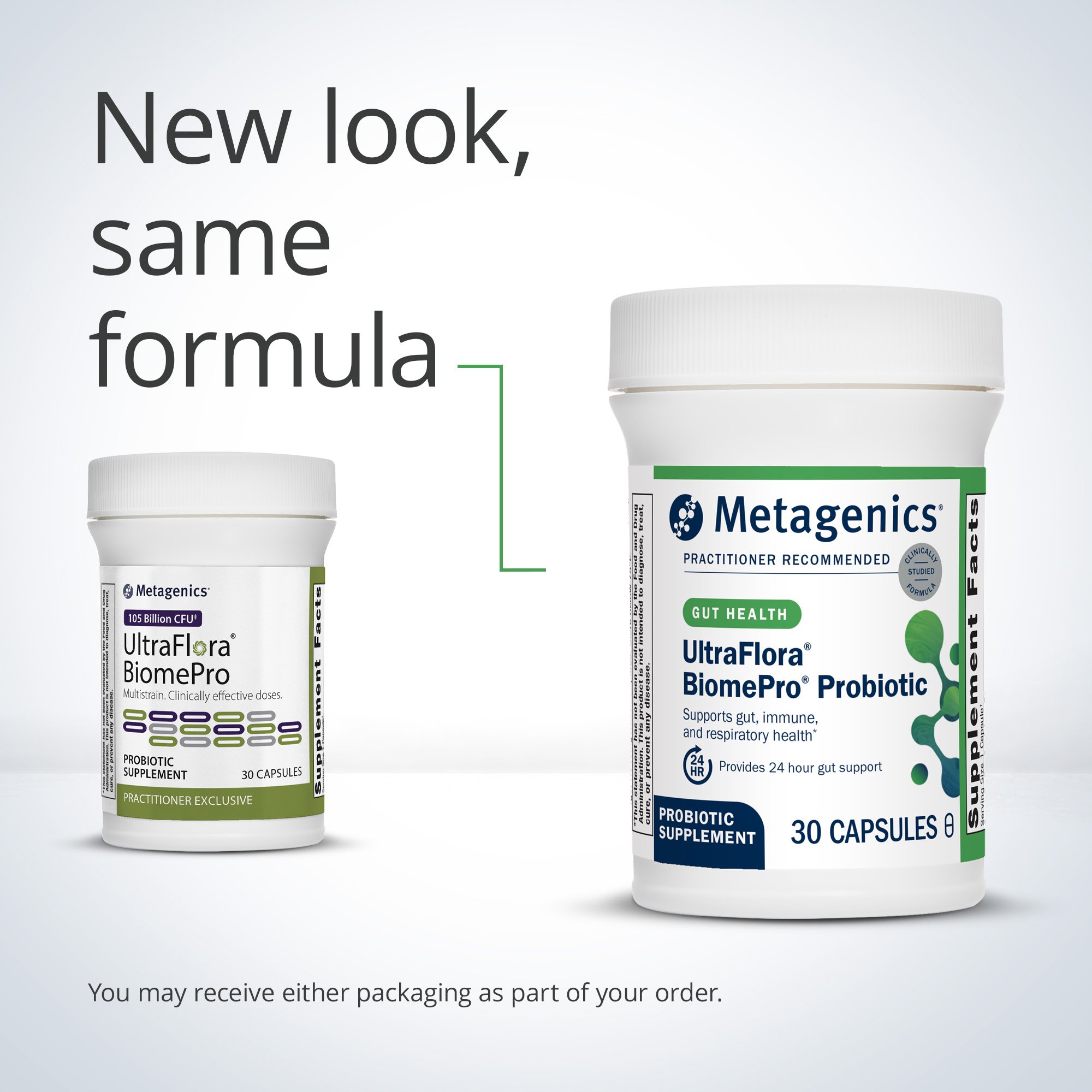 Convenient dosing and storage for better compliance Taking probiotics does not need to be difficult. UltraFlora BiomePro does not require refrigeration and delivers 105 billion CFU in a single capsule dose. TruQualityTM: transparency you can trust With TruQuality, we provide online access to quality testing information for every single batch we make. Simply enter your lot number at Metagenics.com/truquality to view in-depth, easy-to-interpret quality reports.