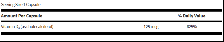 Vitamin D is inadequate in many individuals and daily need appears to be higher than previously thought. 100 capsules.