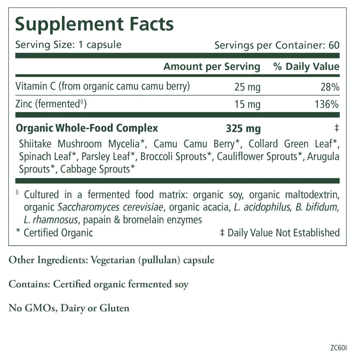 A food-based source of zinc synergized with organic shiitake mushrooms, camu camu berry & vegetables