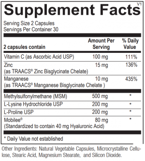 Collagen Factors provides cofactors and precursors that support joints, hair, skin, nails, fascia and other connective tissues. 60 capsules.
