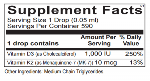Highest quality, pharmaceutical grade Vitamin K2 & D3 together in a convenient dropper bottle. 1 ounce.