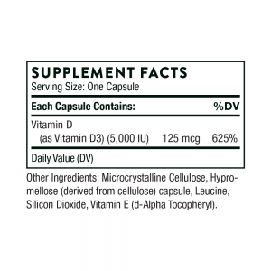In addition to supporting bone health, vitamin D plays an important role maintaining cardiovascular health and immune function, and promoting an overall sense of well-being. 60 capsules, 5000 IU.