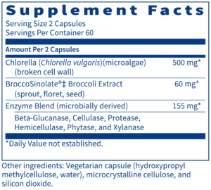 This advanced blend of green plant concentrates and enzymes helps protect the body against chemicals ingested in the daily diet and through everyday environmental exposure. 120 capsules.