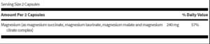 Magnesium is an essential mineral for health, strength, and longevity; it functions as the required bio-inorganic catalyst in over 350 enzyme reactions. 120 capsules.