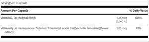 Vitamin D and K support healthy calcium metabolism and bone mineralization throughout the body as well as a healthy calcium balance in vascular tissues. 60 capsules.