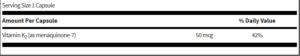 Recent research indicates several important functions for vitamin K beyond its role in blood coagulation, including benefits for bone health and vascular function. 60 capsules.