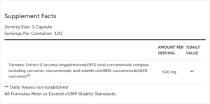 CurcuPlex-95™ features BCM-95®—a 100% pure turmeric extract standardized to curcumin, demethoxycurcumin, bisdemethoxycurcumin, and essential oils of turmeric rhizome. 120 capsules.