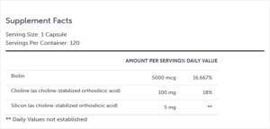 RegeneMax® Plus features clinically tested ch-OSA® (choline-stabilized orthosilicic acid) complemented with biotin. 120 capsules.