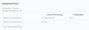 Bioavailable Vitamins K2 (as MK-7) and D3.* 120 capsules.