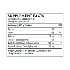 Unflavored collagen for supporting the strength and health of joints, tendons, bones and ligaments – with nicotinamide riboside for healthy aging. 17.8 ounces.